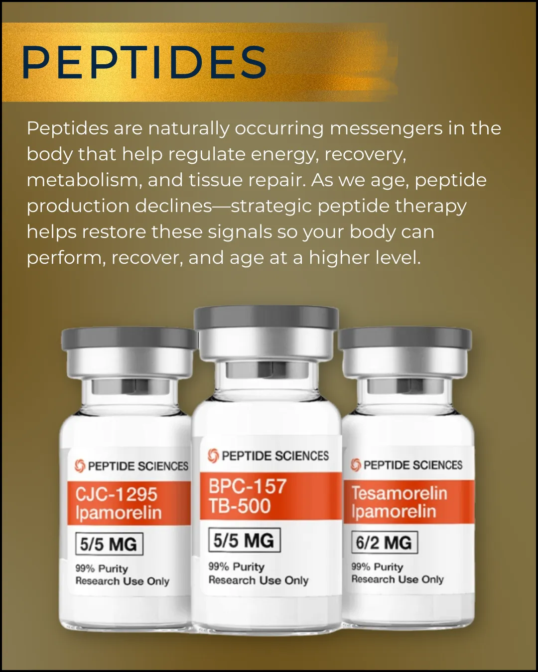 Patients come to us for relief from pain, improved mobility, stress reduction, injury recovery, weight management, hormone therapy, anti-aging care, complete metabolic support, and overall wellness. Whether you’re managing a chronic condition or simply want to feel and function better in your daily life, our care is tailored to your goals.